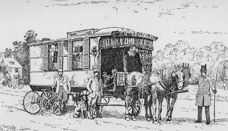 The lure of the open road has always attracted equestrian travellers of all sorts. For example in 1885 Dr. Gordon Stables designed his fabulous “land yacht”, the Wanderer. Known as the “gentleman gypsy,” the Scottish doctor travelled with his coachman and a violin-playing valet. As Stables explored a still-idyllic England, he painted “jolly olde England,” where the villagers were hospitable, the children charming and the blacksmiths competent. | |