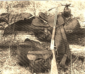 I started out with a James Brisbane-style Australian stock saddle - the only style I had ever ridden in. It gave good service in the first twelve months of my 16,000 kilometer journey around Australia. But I was persuaded by my friend Steve Granger to change to a western-style saddle. Steve and I designed a western-style saddle for an extended ride - we chose the narrowest western tree available as we felt this would spread the weight best on the horse's back to reduce the risk of back problems. This was lined with 1" felt with a layer of foam between the felt and tree. Under it I used a thick pad and serge blanket. The latter absorbs most of the sweat and dirt and can easily be rinsed and dried. My horses have had no back problems from this saddle. My saddle was originally fitted with a breast-plate and breeching. I have found these items are unnecessary except for use in the most mountainous country, and so dispensed with them. My pack-horse sometimes carries instead a neck water-bag in place of the breast-plate. |