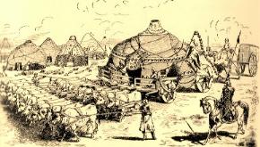 Tents It took two dozen oxen to move Genghis Khan's personal tent, as seen in this illustration based upon the description in "Marco Polo's Travels." |