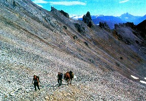 The nearest bear stood up, rocking back and forth to get a better look. We looked at each other – what to do? We turned the horses around and inched back slowly, keeping the grizzly and his companions in sight.