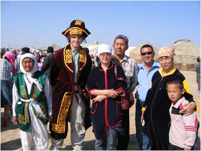 However, the race was being held for a special reason. A mosque which had been destroyed in 1931 by the communists had been rebuilt. To commemorate this special occasion, local Kazak elders invited Tim to be the guest of honour at the ceremony, urged him to give a speech, and then presented him with a native cloak and hat to mark the event.