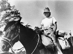 Lucy Leaf spent three years riding through the United States. In 1973 she and Karla Edmunds rode from Bethel, Maine to Missoula, Montana. The following year Lucy rode alone from Missoula, Montana to the Pacific Ocean in Northern Oregon, and then down the coast to Northern California. In 1975 she walked and packed her horse, Igor, in the Sierra Nevada range, across Death Valley to Phoenix, Arizona and then on to El Paso, Texas. In March 1976 she rode from the Guadalupe Mountains in West Texas to Northern Virginia via the Deep South. "While I did not record actual miles, or care much about miles covered," the Long Rider wrote to The Guild, "I figured I traveled about 7,000 miles with Igor. He was a 16.1 hand bay horse who was 5 - 8 years of age during the trip. I purchased him for $150, as he was recovering from shipping fever, from a dealer in Connecticut. He was retired in Maine and lived a healthy and active life until he died naturally at age 27."