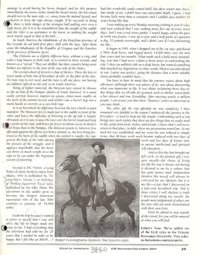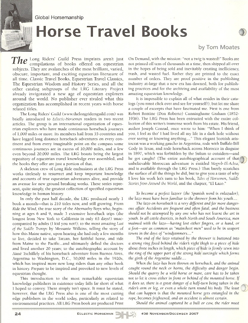 The article below appeared in Eclectic Horseman, an interesting equestrian magazine concentrating on training. We recommend our visitors subscribe - click on the link above to go to its website.