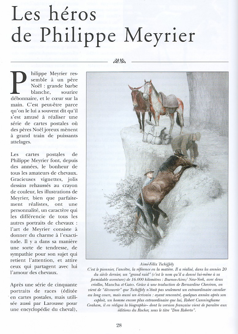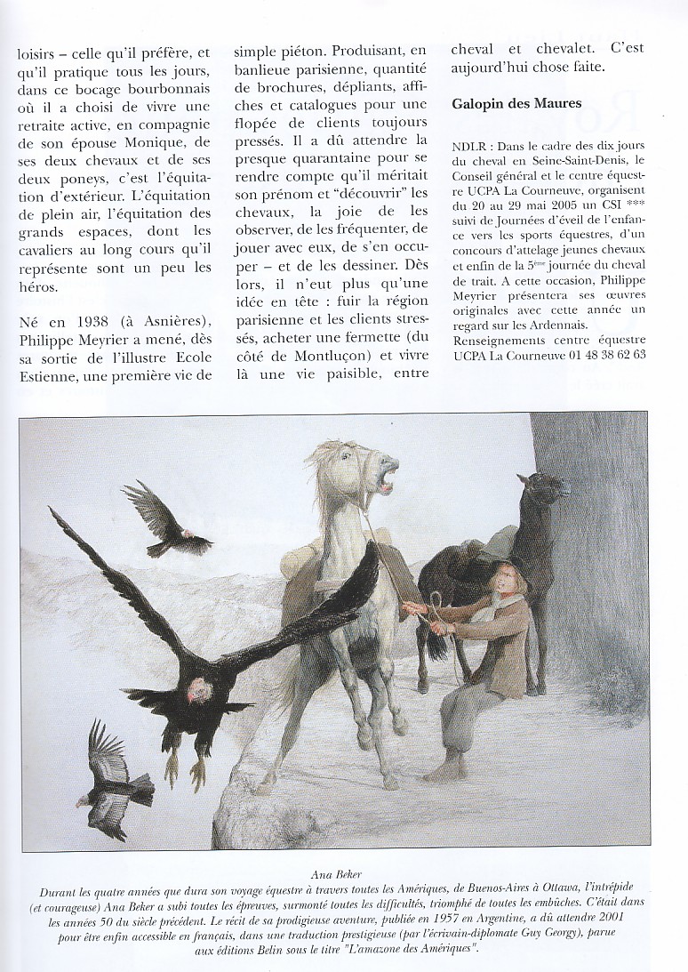 Click on any of the pages below to read an excellent article about Philippe Meyrier and his superb paintings of Long Riders. The article also mentions the presentation of The Long Riders Literary Project to the Royal Geographical Society in London in March 2005.