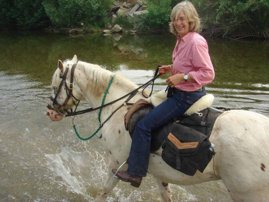 | After Long Rider Lucy Leaf completed her journey through the United States in the 1970s, she travelled 2,000 miles by dog team on two separate trips in Labrador. Because of her keen interest in medicine, Lucy has degrees in animal science and nursing. She is seen riding one of the Akhal Tekes which she trains in Virginia. |