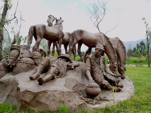 This statue commemorates the horses and humans who travelled along the ancient Tea Horse Trail. |