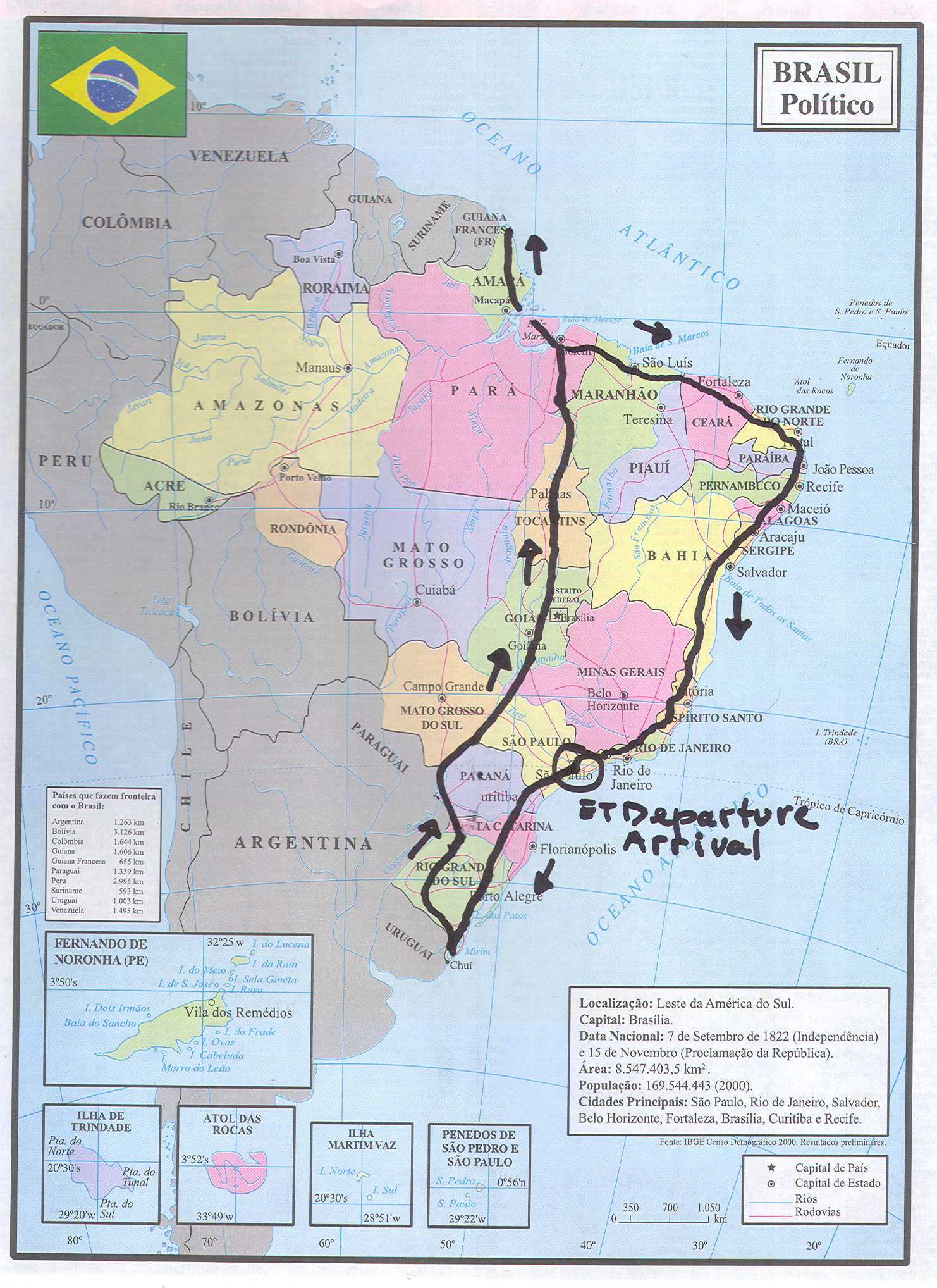 The journey covered 19,000 kilometres (11,800 miles) from Sao Paulo to Uruguay, then south to the Brazil-French Guyana border and back to Sao Paulo. Pedro was accompanied by a friend, José Reis, and his brother, Jorge Dias de Aguiar. | |