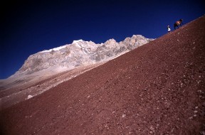 I felt reasonably confident that we would be able to cross the boggy plain because half-way across I could see the remains of an old yak pen sticking up out of the water. I just hoped the ground under the water was not too soft! So, mules in tow, I went straight on.