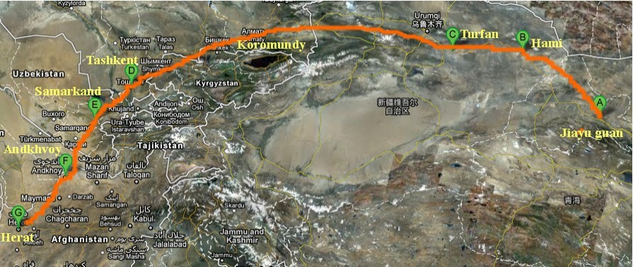 Dr. Sally Church translated the diary Cheng kept during his journey, making it the oldest known “Story from the Road.” This map shows the route Cheng used to reach Afghanistan. |