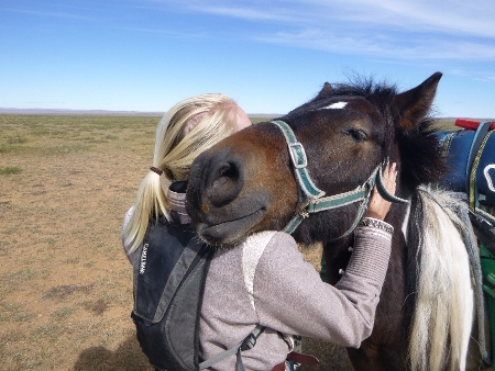 It took time but I did get to a stage where they instinctively knew that I was safe, that whatever I was going to do to them would probably feel nice and after time they relaxed so much that I could touch them all over. To me this was significant and even more so when I kissed their faces or their blind spots in front of Mongol herders, or when Nic casually picked up their rear hooves for inspection, something that is never done here.