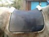 Like many experienced equestrian travellers, Sabine has learned that a saddle pad should not extend out over the hips.