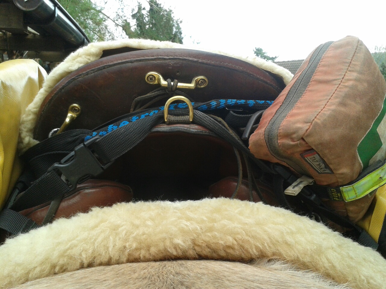 Using this method, the Ortlieb saddlebags are placed on top of the felt pad and do not touch the back of the horse. |